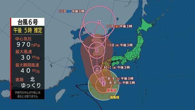 そして気象庁によりますと南鳥島近海にある熱帯低気圧が8日にも新たな台風7号へ発達するおそれがあり、発達しながら11日以降、北よりに向かって行く予想となっています。
