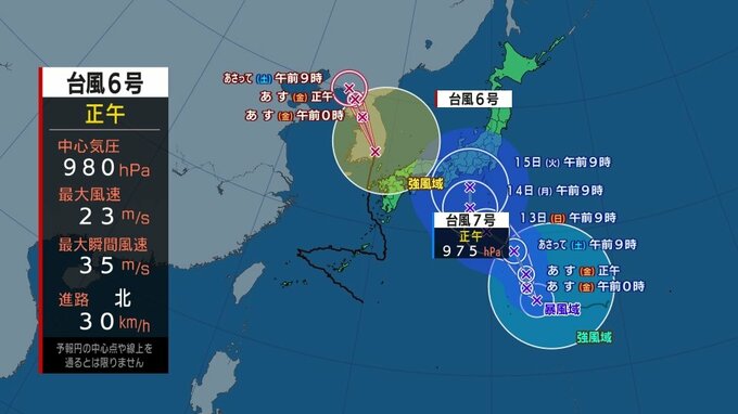 一方、台風6号は今後、朝鮮半島を北上し、11日夜には朝鮮半島付近で熱帯低気圧に変わる見込みです。