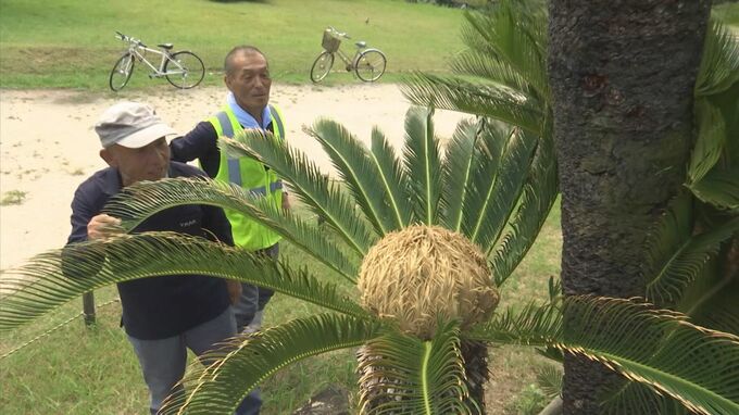 これも猛暑の影響なのでしょうか。10年に一度咲くとも言われるソテツの花がこの夏、鳥取県米子市でなんと、4本も同時に咲きました。