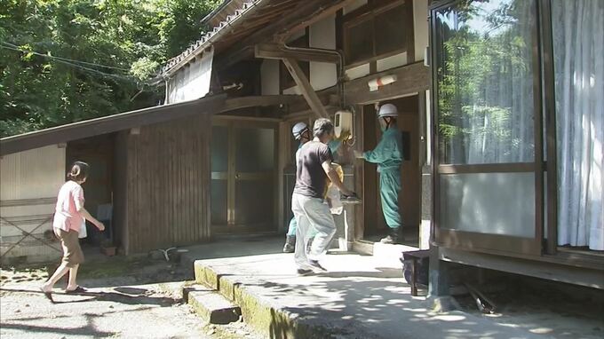 久々に帰った林さんの家、中国電力の係員が最終チェックをして電気を通しました。