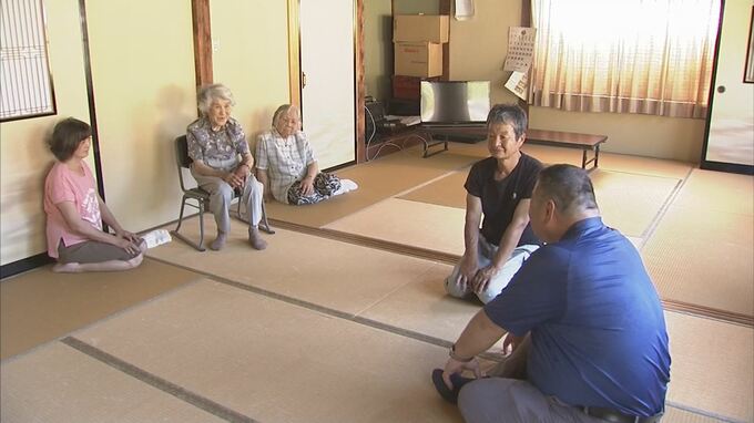 ここは鳥取市河原町小河内の公民館、台風7号の被害のため新田集落の人達4人が今朝まで避難生活を送っていました。60代の夫婦と80代、90代の高齢の女性です。