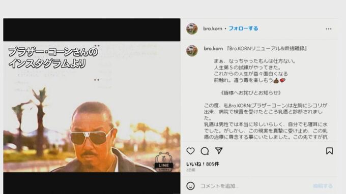 代表曲「WON'T BE LONG」はミリオンセラーも記録したバブルガム・ブラザーズのブラザー・コーンさん。29日、インスタグラムなどで自身が乳がんと診断されことを公表しました。