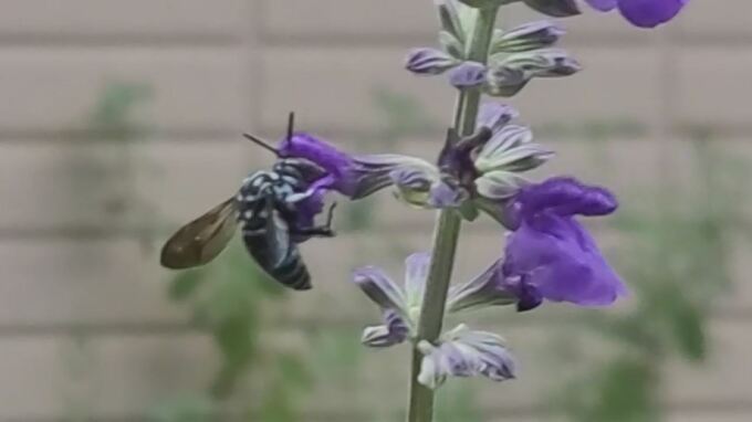 「(手に)当たってブーンって言ったんですよ。見たらハチがいて。よーく見たら青かったんで。わーっと思って。」