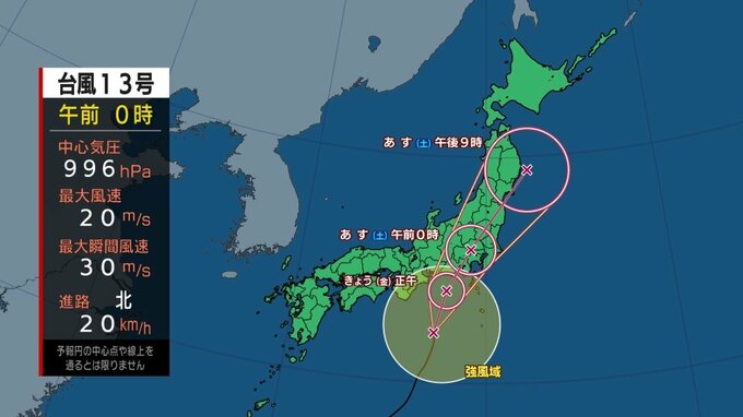 「台風13号が東日本に上陸するのはほぼ確実な状況です。8日から大荒れの天気に警戒してください。