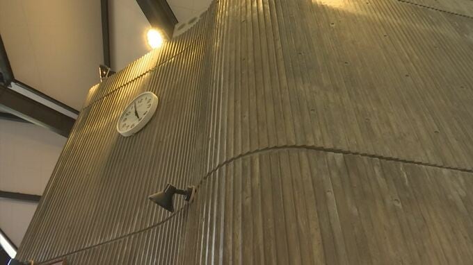 「まず1つはこの後ろにあるこのRの曲面壁になっています。設計当時は直線で設計されていたようなんですけども、現場で変更されてこのような壁になっています。」