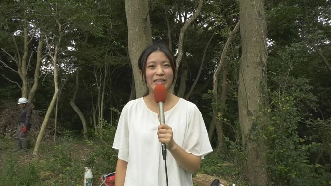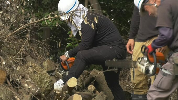 「伐採後、長らくそのままになっていた木が今チェーンソーによって小さく刻まれていきます」