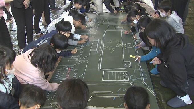 学校の教室の下絵には、守っていきたい自然や生き物。