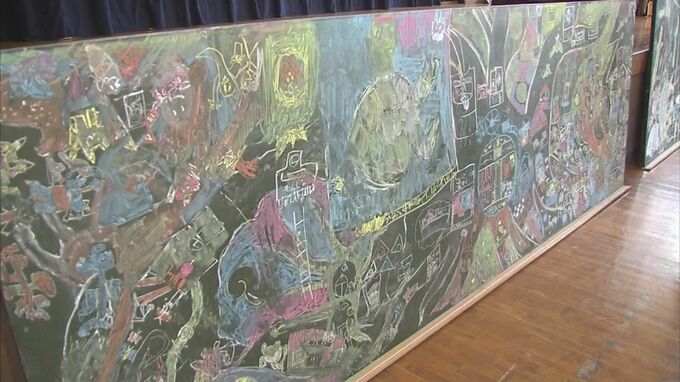 予定の時間を少し超えて、力を合わせて描き切った黒板アート。