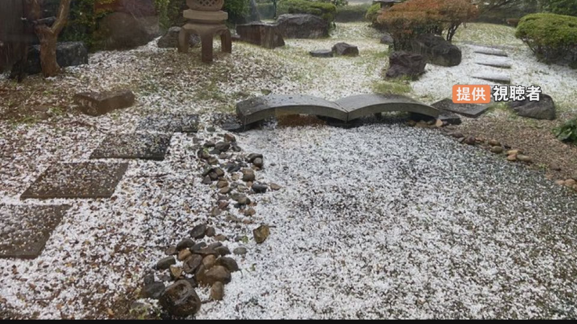 そしてこちらも出雲市。中庭が一瞬で真っ白になりました。大きいものでは2センチほどあったということです。