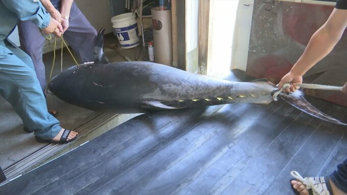 軽トラックに積み込まれたのは体長2メートル17センチ、重さ145キロのクロマグロ。(※血抜き後の重さ)