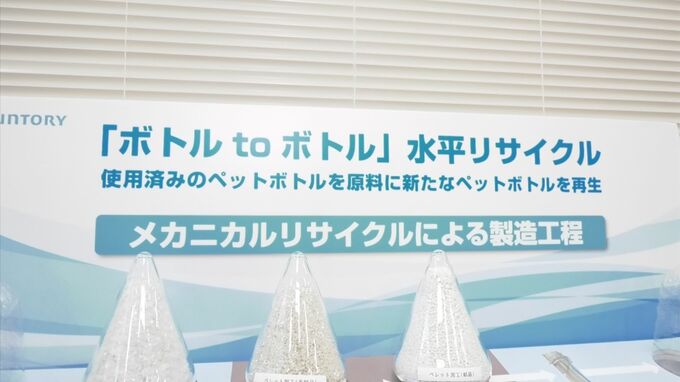 サントリーグループと江府町が先月から新たに始めた「水平リサイクル」。使用済みのペットボトルをペットボトルに再生させる取り組みで、新たな原料からペットボトルを製造することと比較するとCO2をおよそ60%削減できるといいます。