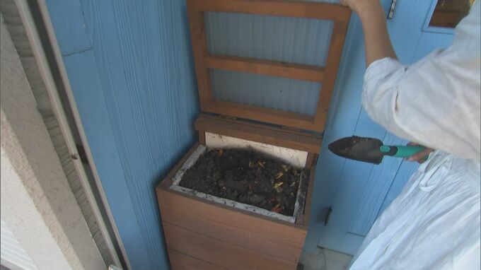 生ごみをコンポストで処理。ゴミを出さない工夫も行っています。