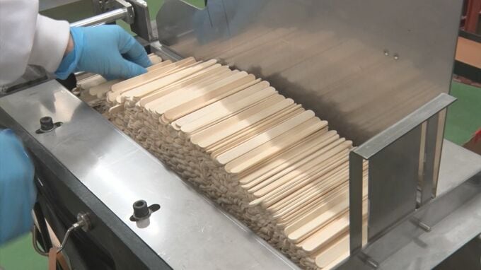 「竹は中にいくほど白くなってきます。ただ、中にいくほど、強度が弱くなっていくという良くない面もあって、ちょうど、竹の厚みの真ん中部分を狙って、そこのみを使って、ロッテのアイス用のスティックを作ることが大事になりました」