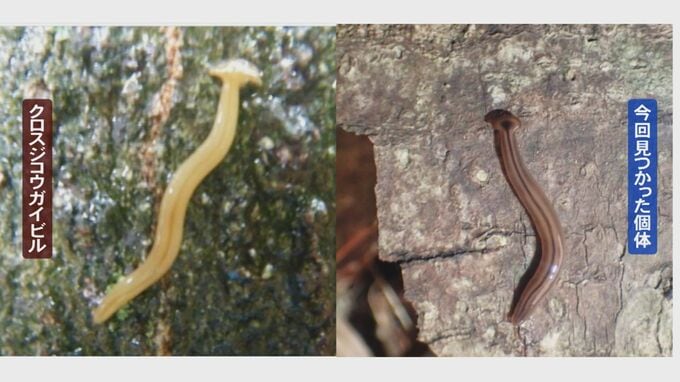 3本の黒い筋が入っていて、体長およそ5センチほど。伸びたり縮んだり動いていて、「コウガイビル」というプラナリアの仲間のように見受けられるといいますが、日本に生息しているコウガイビルの、どの種類にも当てはまらないというのです。