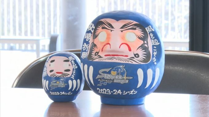 松江市東出雲町で制作されている工芸品・出雲だるまと、B1・島根スサノオマジックのコラボだるまです。