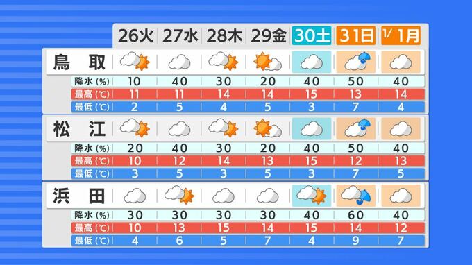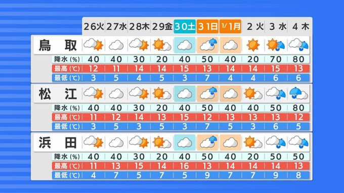 10年に一度クラスの「暖かい年末年始」になる可能性 その時期としては10年に1度程度しか起きないような「著しい高温」 日本各地に「高温に関する早期天候情報」気象庁が発表 2023年12月25日(月) 17:35 鳥取
