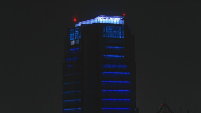 新たな地域の魅力向上を図ろうと、山陰合同銀行は島根県松江市の本店ビルを照らすライトアップを始めました。