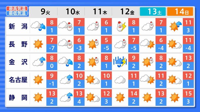 北陸地方「警報級の大雪」地域が広がる可能性 24時間降雪量「80センチ」予想も 長野県と関東地方北部も「大雪」となる見込み