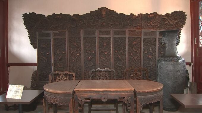 九龍壁。紅木という高価な木に、九匹の龍が違う表情で彫られているとても貴重なものだといいます。