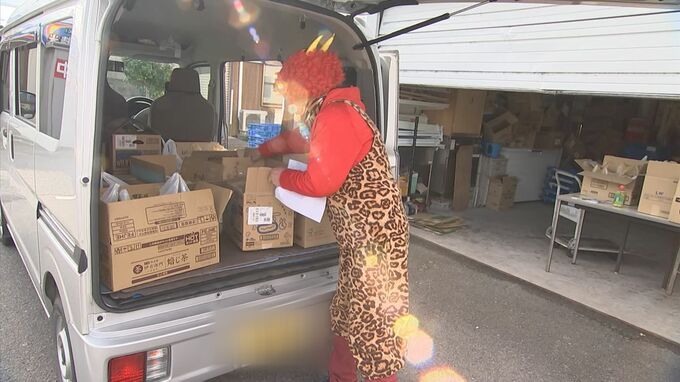 節分に合わせて鬼の格好をした男性が、恵方巻を予約している客の元へ車で配達しに行きます。