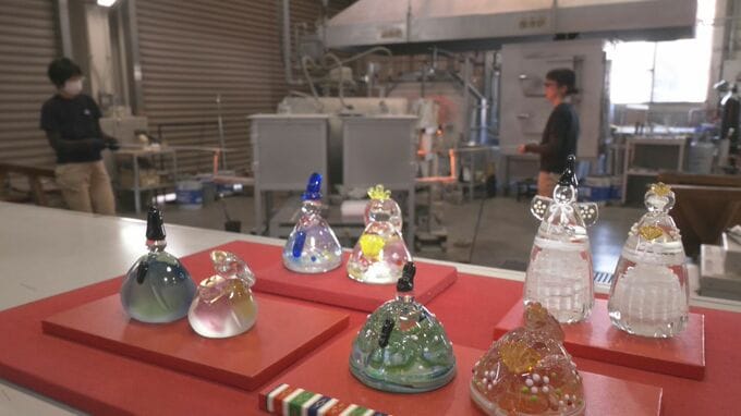 ガラスの空きビンを再利用した、ひな人形が愛知県岡崎市の工房で作られています。