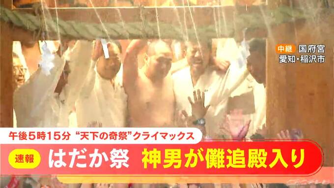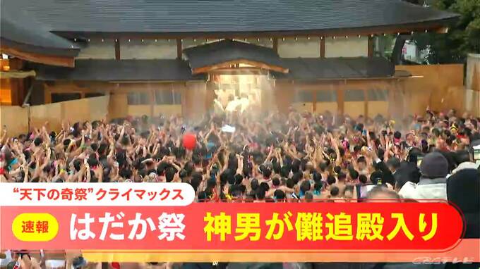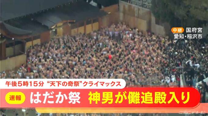 22日に、愛知県稲沢市の国府宮で行われている「はだか祭」。
