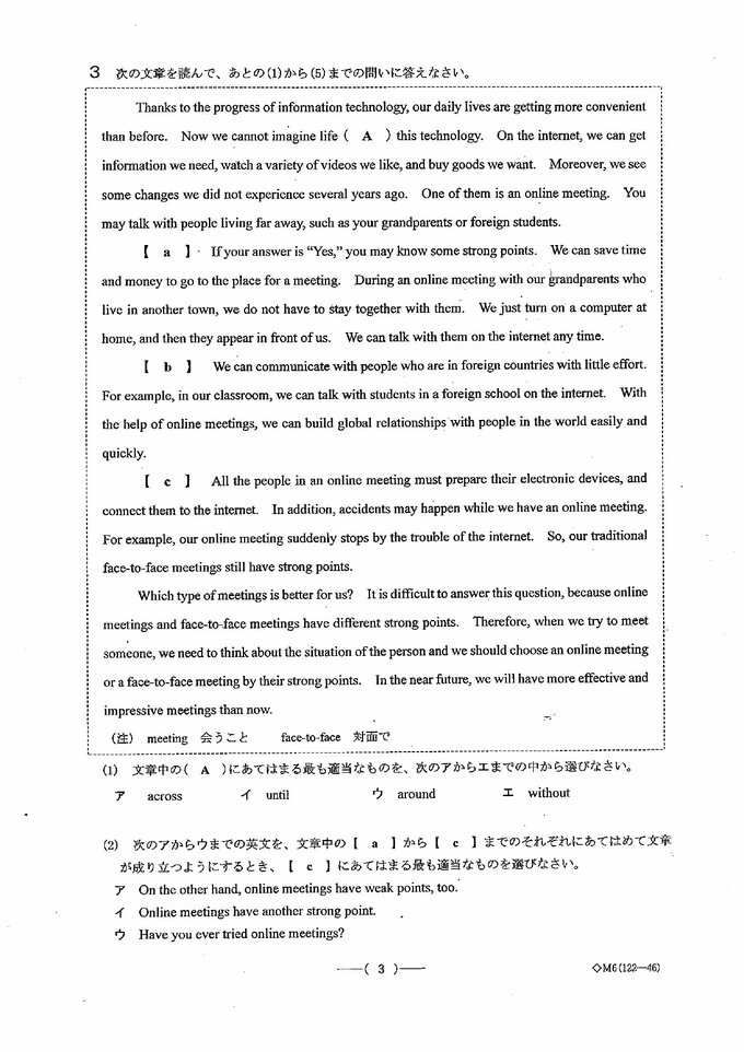 3. 愛知県公立高校入試2024「英語」の試験問題・解答 「Well, if it were sunny today,」に続くのは「I will go」か「I would go」か…