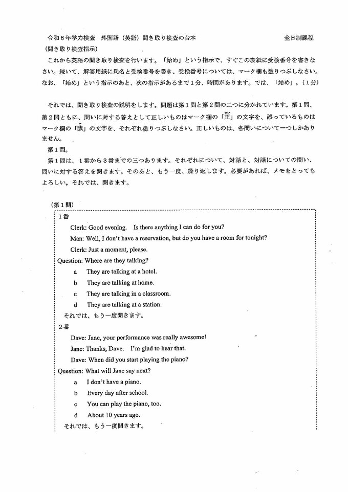 愛知県公立高校入試2024「英語」の試験問題・解答 「Well, if it were sunny today,」に続くのは「I will go」か「I would go」か…
