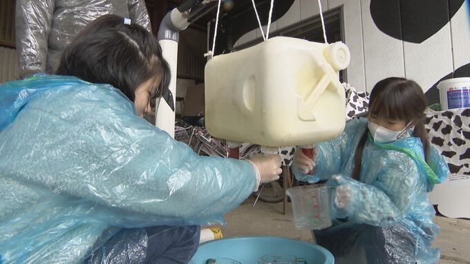 愛知県刈谷市の牧場で行われたこの催しは、大手食品メーカーの明治が、食の大切さなどへの理解を深めてもらおうと開いたもので、23日は家族連れら28人が参加しました。