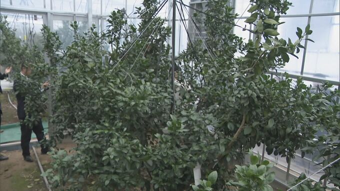 愛知県蒲郡市で、ごま油工場から出る二酸化炭素をハウスミカンの栽培に役立てる実証実験が始まりました。