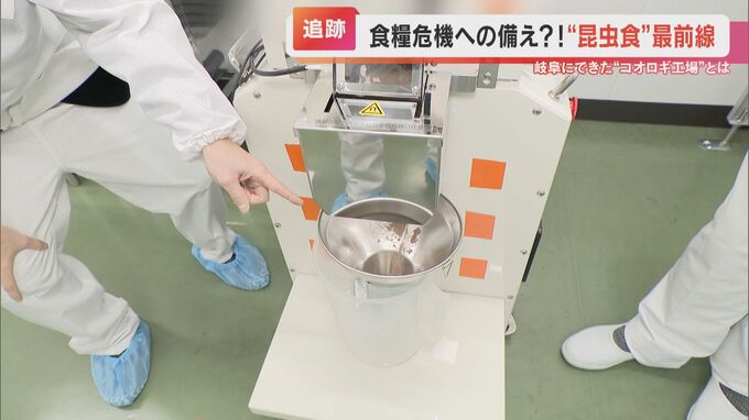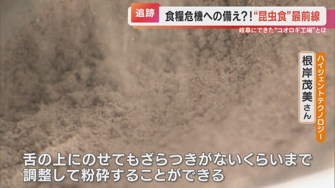 「コオロギがこの機械の中に入っていきました。そしてここで粉々になってますね。コオロギパウダーが落ちてきました」