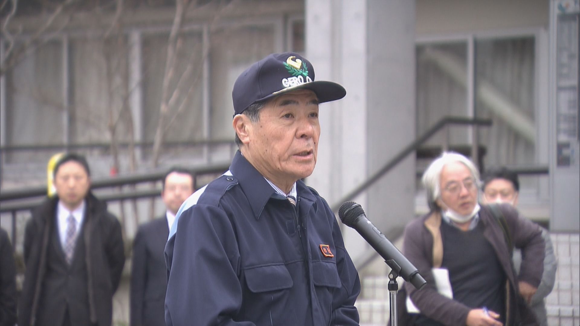 29日朝の出発式には、現地に派遣される市の職員や組合員ら9人と下呂市の山内登市長が出席しました。