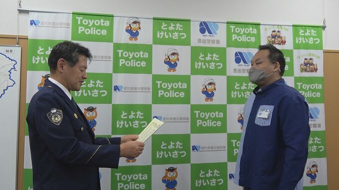 3月1日、架空料金請求詐欺の被害を未然に防いだとして、豊田警察署の野村喜之署長から關さんに感謝状が贈られました。