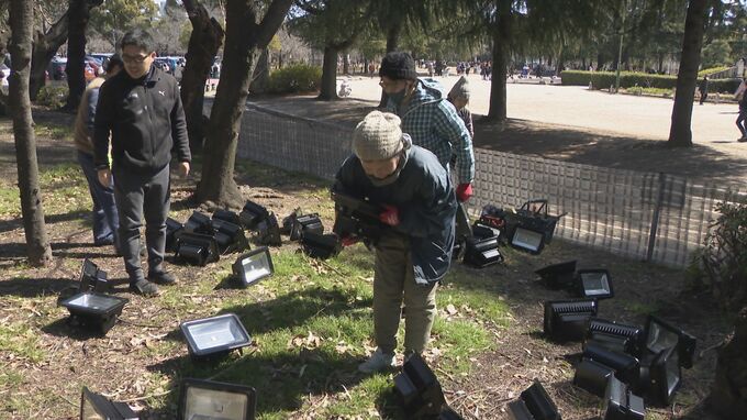 名古屋市の鶴舞公園で、恒例の「桜まつり」に向けたライトアップの準備が行われました。
