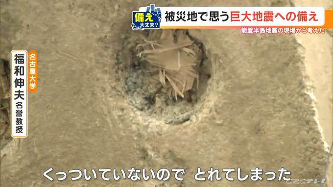 「杭(くい)があったところなんです。横に建物が倒れようとすると、昔の杭は建物の重さを支えているだけで、くっついていないのでとれてしまった」