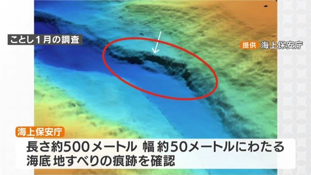 海上保安庁の調査で、富山市から4キロ沖合の富山湾の海底で長さ約500メートル、幅約50メートルにわたる地すべりの痕跡が見つかったのです。