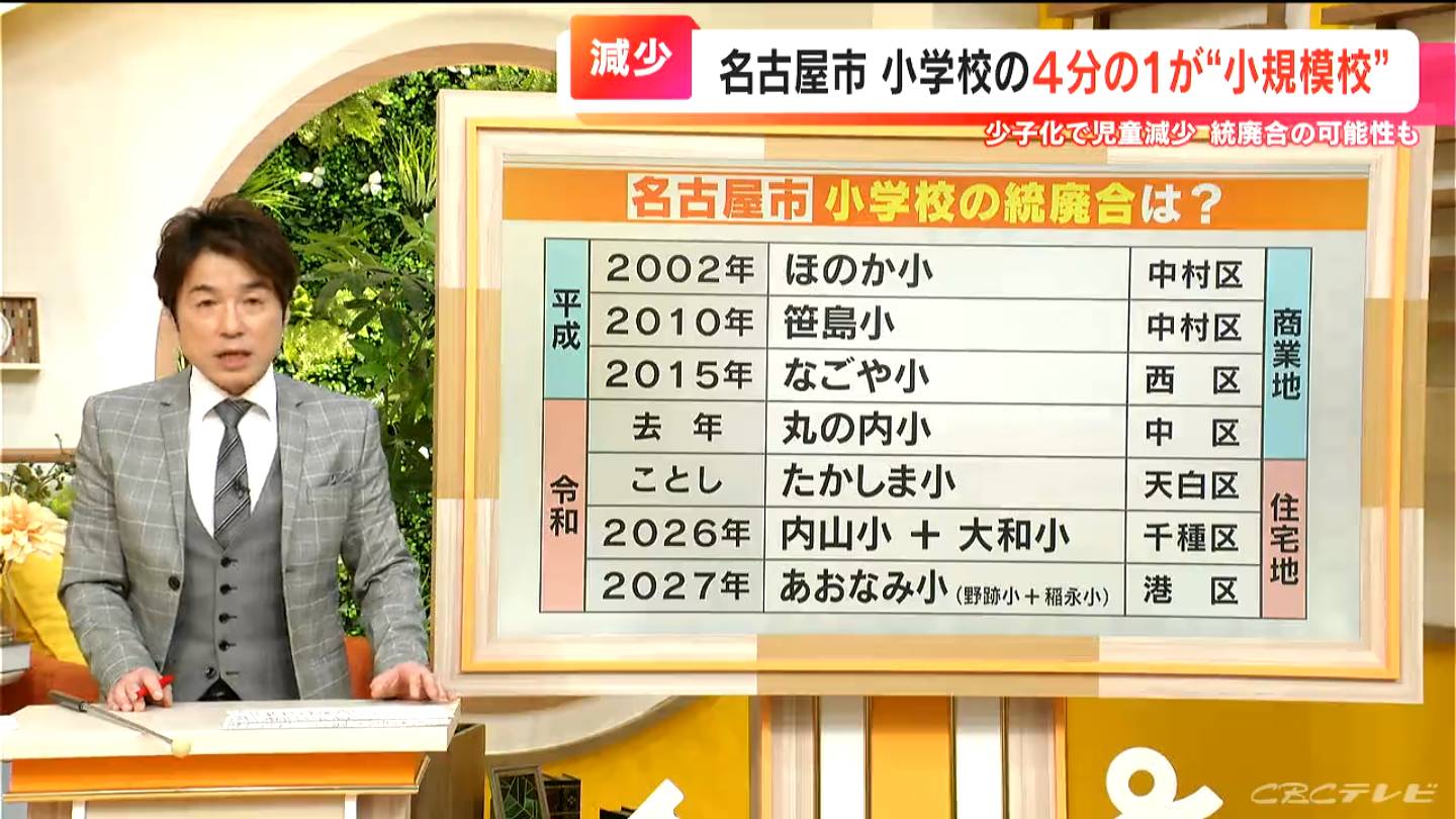 過疎地ではない名古屋でも、少子化による小学校の統廃合が進んでいるんですね。
