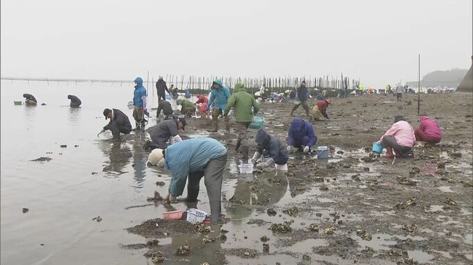 愛知県田原市で3月25日、潮干狩りが解禁され、大勢の人で賑わっています。
