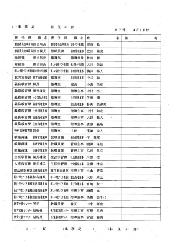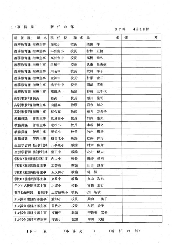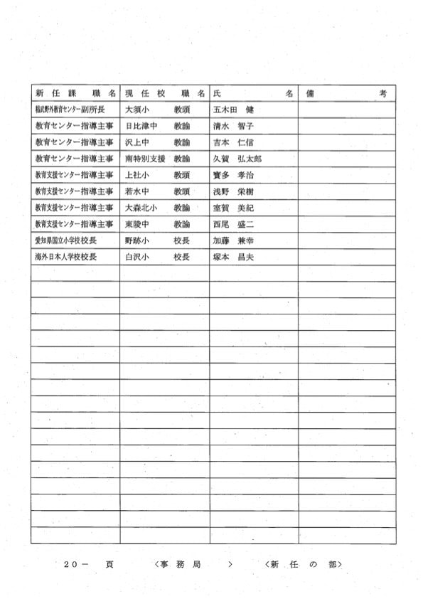 名古屋市 教職員の人事異動2024 【幼稚園・小学校の教員】【校長・教頭・主幹教諭など】「あの先生どこ行きゃ~す?」 2024年3月29日(金) 17:08 国内 事務局・退職 事務局・新任 事務局・新任 事務局・転任 事務局・転出