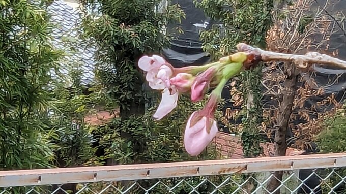28日午前10時頃、名古屋地方気象台に植えられたソメイヨシノの標本木に、サクラの花が、5輪以上咲いているのを気象台の職員が確認しました。
