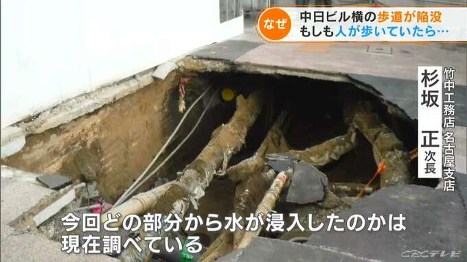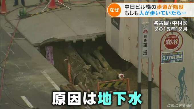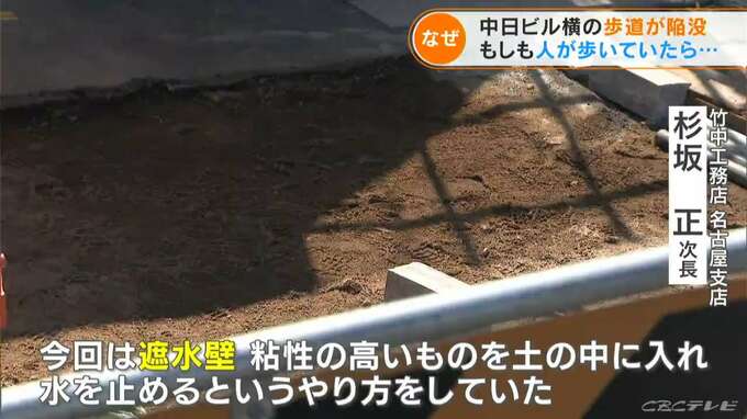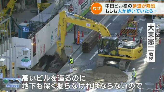 この時の陥没では、地下水と、工事現場を囲っていた壁から漏れ出した土砂も一気に流失。歩道が陥没したのです。この工事を請け負っていたのは、今回、中日ビルの建設にもあたっている竹中工務店でした。