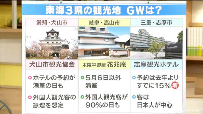 犬山市を訪れる外国人観光客は1割弱だったのが、半分にまで増えているそうで、ことしのゴールデンウィークも外国人観光客が急増すると想定しているということです。