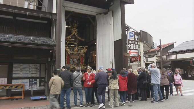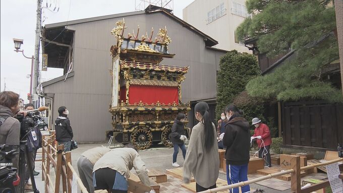 屋台の近くには観光客らが訪れ、間近に見てその姿を写真に収めていました。ことしの春の高山祭は、新型コロナが5類に引き下げられてから初めての開催で、高山市は約18万人の人出を予想しています。春の高山祭は4月14日と15日に行われます。