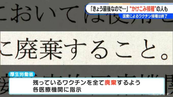 厚生労働省は残っているワクチンを全て廃棄するよう、各医療機関に指示しています。接種開始から3年余りがたち、大きな節目を迎えたワクチン接種。