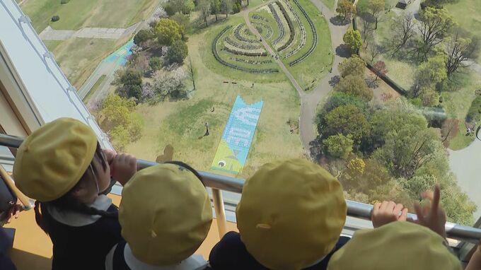 優雅に泳ぐこの巨大こいのぼりは、園内の展望台からも眺めることができ、5月6日まで楽しめるということです。
