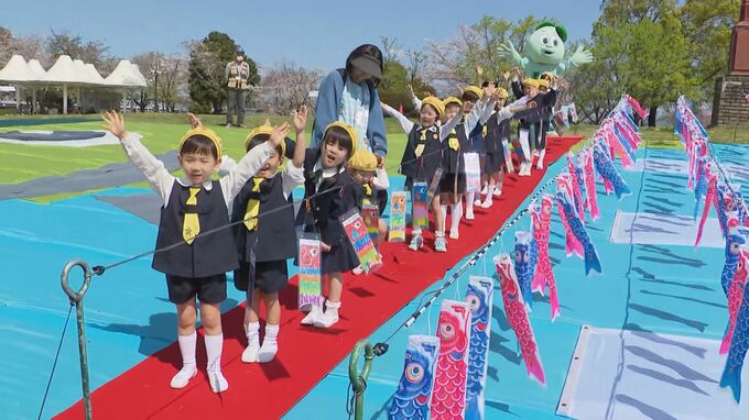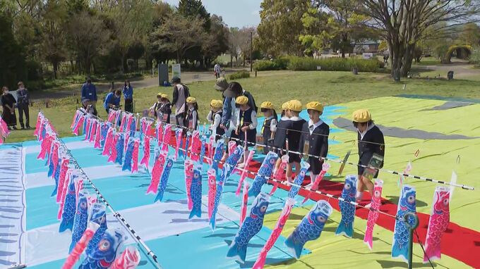 愛知県一宮市の国営木曽三川公園に、全長40メートルの巨大なこいのぼりが登場しました。