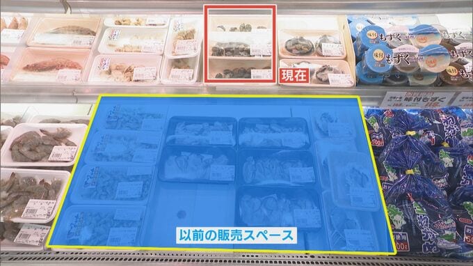 このスーパーでは、春先の旬の時期はアサリの特売スペースを設けていましたが、今は売れないため仕入れを大幅に減らしています。
