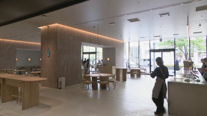 19日、報道陣向けに公開された地下1階から地上3階の商業エリアには、アメリカ発祥の人気カフェ「ブルーボトルコーヒー」や、入場料を払えば3万冊の本が読み放題の書店「文喫(ぶんきつ)」など93のテナントが入り、このうち3分の1が名古屋初出店です。