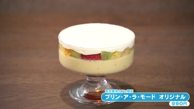 「お待たせしました。名古屋栄カフェ限定のプリンアラモードです」