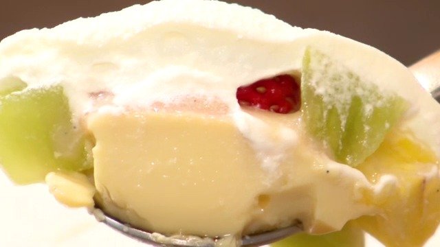 「断面が綺麗!とろとろ、おいしい。上のクリームがさっぱりしていてフルーツの酸味と合う」